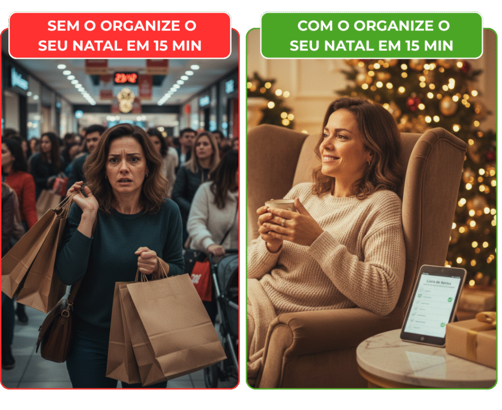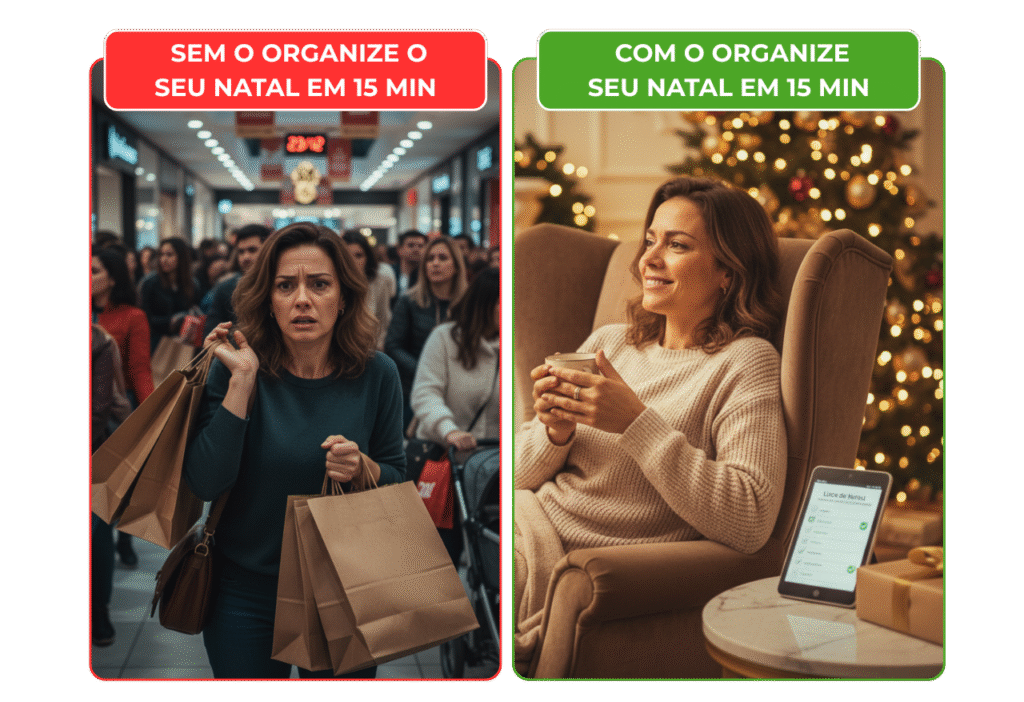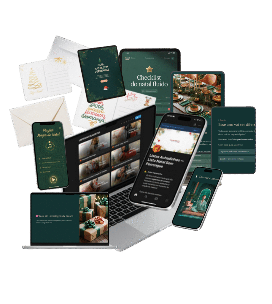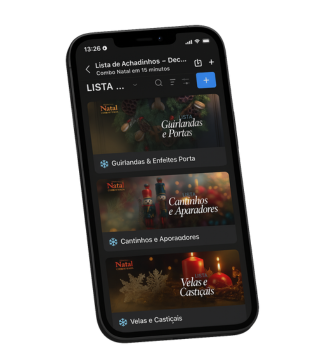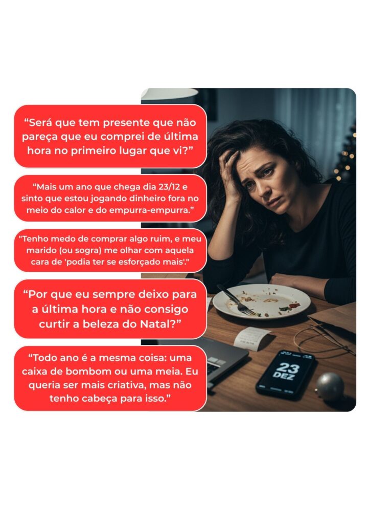 Você só precisa de 15 minutinhos e um celular na mão, o resto está pronto: listas clicáveis, ideias certeiras e tudo organizado pra você não pirar em dezembro.